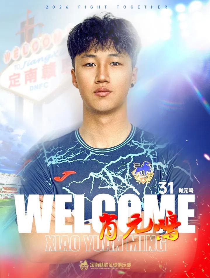 2026赛季肖元鸣加入定南赣联,将身穿31号球衣代表定南赣联参加中甲联赛,欢迎肖元鸣加入定南赣联足球俱乐部。